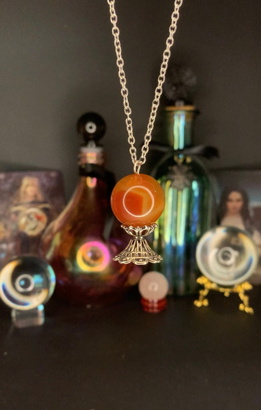 Carnelian Crystal Ball Necklace